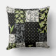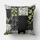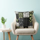 Un chic Oreiller Faux Patchwork ou Coussin dans le style Art Nouveau, avec Lilies-of-the Valley sur un arrière - plan noir ; de la collection Posh & Painterly "For the Love of Lilies".