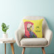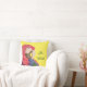Feliz Navidad lance l'oreiller, avec un perroquet de macaw rouge sur un arrière - plan jaune. Avec des lettres personnalisables en vert, vous pouvez ajouter votre propre message. Idéal pour fêter un Joyeux Noël avec un goût du Mexique.
