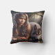 Coussin Femme amérindienne assise par Wolf pendant la nuit