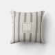 Une ferme moderne sur mesure lance l'oreiller avec votre monogramme et votre nom de famille sur une bande de tiques beige et bleu de la ferme.