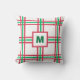 Coussin Festif Monogramme moderne Rouge Vert Plaid Vacance