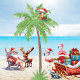 Santa Claus et Rudolf prennent des vacances sur la plage. Ils apprécient le temps chaud et se sont fait de nouveaux amis : les flamants roses, un gecko et un perroquet coloré. Le traîneau est plein de cadeaux et Père Noël a l'air très détendu dans son transat avec son cocktail. La parfaite fête de plage d'été !