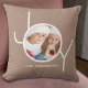 Cet élégant Coussin photo de Noël est décoré avec le mot JOY dans la typographie blanche moderne sur un arrière - plan beige taupe. Facilement personnalisable avec votre photo et votre nom.