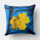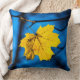 Coussin Feuille d'érable jaune en bleu