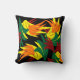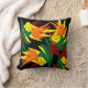 Cet étonnant oreiller décoratif à jetons présente un motif abstrait de feuille dans toutes les couleurs de l'automne : orange, jaune, rouge et vert. Le dessin est répété sur le dos.
