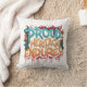 Un coussin vibrant et captivant avec l'expression "Fiers Patrimoine Endures" en lettres de blocs multicolores, arrangé en motif circulaire, créant un design visuellement frappant et mémorable.