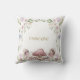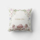 Une aquarelle féerique magique jette l'oreiller pour la chambre d'une petite fille, avec un cadre féerique enchanté de jardin avec fleurs, et champignons.