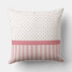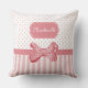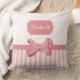 Un carré à rayures roses douces girly lance l'oreiller avec de mignons pois roses et blancs et un ruban élégant de pois rose clair attaché dans un arc féminin. Personnalisez en ajoutant le nom de votre jeune femme spéciale. Image imprimée plate d'un arc, PAS un ruban réel.