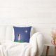 Un coussin avec l'illustration d'une fille debout sur une falaise soufflée par le vent avec une étoile torche sur un côté. Retourne l'autre côté, et la fille... s'est éloignée =)