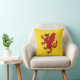 Throw pillow with design with a flag of historic county of Somerset, in England, Great Britain; yellow flag with an illustration of a red dragon in the centre