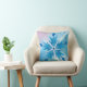 De beaux flocons de neige lancent l'oreiller avec un bleu et lavande avec de petits flocons de neige muets sur le devant avec un grand flocon de neige bleu aquarelle au centre, le fond est doté d'un lavande muet, rose et bleu arrière - plan avec beaucoup de jolis flocons d'aquarelle bleu de différentes formes et tailles!
