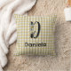 Cet oreiller magnifiquement conçu présente une lettre monogrammée "d" et est orné d'un charmant motif de fleurs à l'aquarelle. L'oreiller est complété par un charmant motif gingham jaune-gris rétro, ce qui en fait un ajout charmant à tout décor intérieur. Cadeau de Noël parfait.