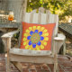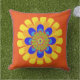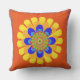 Fleur vibrante avec pétales en orange, orange rouge, bleu cobalt, bleu clair, vert et jaune.