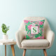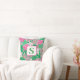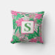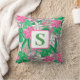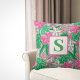 Coussin Fleur tropicale Monogramme rose blanc vert Preppy