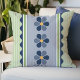 Coussin Fleurs bleues et vertes à rayures