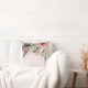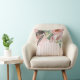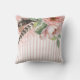 Ce beau, féminin coussin de décorateur a un talent de boho avec les rayures roses et blanches et les grandes fleurs roses avec des plumes sur l'avant et le dos.