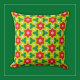 Coussin Fleurs rouges sur fond floral géométrique vert cit