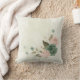 Magnifique coussin de jet romantique avec des fleurs vert sauge et rose blush et quelques jolies feuilles .