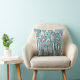 coussin floral blanc, couleurs dans les tons bleus et verts avec une pointe de rose poussiéreux. coussins amusants pour tous ceux qui veulent quelque chose de différent.
