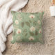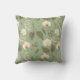Joli et moderne Boho coussin design floral avec des fleurs neutres et vertes et feuillage sur un arrière - plan vert sage.