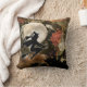 Vintage silhouette sorcière volant au-dessus de la grande lune avec arrière - plan rose fleuri.