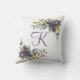 Floral jaune et violet monogramme, personnalisé, avec des feuilles verts jettent l'oreiller