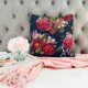 Coussin Flore Chic Bourgogne Sur Bleu Marine