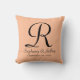 Ce coussin carré de 16" x 16" est orné d'un fond floue de pêche. Le monogramme et le texte sont noirs. Le motif et le texte se répètent au dos. Le tissu par défaut est le coton, mais également disponible en polyester. Décoration intérieure minimaliste unique et belle. Élégant, chic et raffiné. Les couleurs tendance se marient avec la décoration moderne. Tous droits réservés © 2023 Alan & Marcia Socolik.