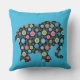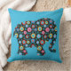 Beautiful folk art povents, ouvres et decor with flowery patterned elephant silhouette on light blue background.