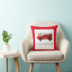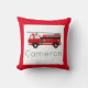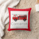 Ce carreau mignon comporte une illustration artistique d'un camion de pompiers rouge. L'image est encadrée avec une frontière grise pâle, et un nom d'échantillon est imprimé au-dessous du firetruck. La frontière extérieure du coussin est une couleur rouge qui assortit le firetruck.