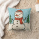 Joli oreiller de Noël avec une illustration amusante de bonhomme de neige.