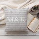 Un oreiller en gris pâle est conçu par un gardien de voeux mariage créatif, avec vos initiales en blanc, avec vos voeux mariages superposés dans des lettres manuscrites. Collez vos voeux de mariage dans le champ modèle, puis cliquez pour "customiser plus loin" où vous pouvez ajuster les polices et les tailles. Le coussin revient à de larges rayures grises et blanches. Un cadeau unique et créatif pour les jeunes mariés.