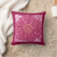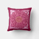 Jetez l'oreiller dans un bloc d'impression d'une marguerite Gerbera, à partir d'une photo, numériquement transformé et teint à la main - nuances de rose fuchsia avec marron profond / bordeaux et rose coquille, avec une bordure marron / bordeaux profond