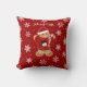 Add a touch of holiday sweetness to your home with this gingerbread man Christmas throw pillow! The cute gingerbread cookie wears a red sweater with a snowman, Santa hat, and holds a candy cane, all surrounded by white snowflakes on a festive red background. A perfect accent for your living room, couch, or bedroom décor this winter. Great as a holiday gift or seasonal home accent.