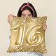 Fabuleux doux glamour 16 girly jetez oreiller pour votre fille. Sur l'avant, vous pouvez customiser le style, la couleur et la taille de la police selon vos besoins. Cette version a une taille de police uniforme pour le prénom de votre fille et la conception de texte "Sweet 16". Le côté arrière comporte le nombre seize dans une image texte bulle bouffante. L'image arrière - plan présente une feuille de style métal brossé à l'ombre dorée et dorée, avec des graphismes d'art numérique en parties scintillant d'or imitation. Les scintillants de luxe, la parties scintillant et la feuille seront créés avec des éléments artistiques créatifs qui s'impriment comme une photo.
