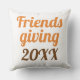 C'est un coussin de lancer que vous pouvez utiliser pendant Thanksgiving ou Friendsgiving. Il y a un message amusant qui dit "Gobble 'til you wobble' dans des couleurs qui vous rappellent la chute. Il y a aussi une photo d'une dinde dessus. Sur le dos du coussin, il dit "Amical" et vous pouvez ajouter l'année pour le rendre spécial. C'est une excellente façon d'ajouter du plaisir à vos décorations de vacances et de faire sourire vos invités.