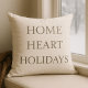 An ivory holiday accent pillow featuring stacked serif lettering—Home, Heart, Holidays—bringing a warm seasonal touch to sofas and reading chairs. Its neutral palette pairs easily with festive décor, adding a welcoming layer to holiday evenings at home.