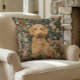 Illustration de charme d'un Goldendoodle dans un ancien jardin anglais dans le style de William Morris.