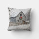Une grange rustique est ornée d'une couronne de Noël festive avec en toile de fond la neige qui tombe doucement