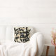 Coussin Gravures beiges et noires, ruban détruit sur clair