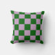 A bold green and light purple checkerboard pillow with a playful geometric style. Perfect for modern decor.