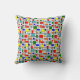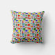 Cet oreiller de lancer a une conception Bauhaus d'une grille avec carrés et rectangles en rouge, vert, bleu, orange, bleu clair, jaune et rouge.