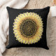 Gros tournesol, coeurs et pois dorés sur l'oreiller à lancer arrière - plan noir. Elégants Coussins décoratifs. Belle Décor Maison.