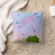Une grenouille de dessin animé souriante aux yeux grands regarde à travers une herbe haute et lugubre dans un champ sur ce coussin de statistiques de naissance de petite fille. Des libellules roses/violettes/bleues de tailles variées volent au-dessus de la tête de la grenouille contre un ciel bleu/rose, et les statistiques de naissance du bébé peuvent être customisées sur une libellule rose/violet/bleu plus grande - le ciel bleu et rose et les libellules plus petites sont à l'envers - par katz_d_zynes