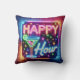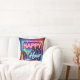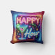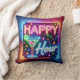 Un panneau de néon lumineux et coloré affiche "Happy Hour" à côté d'un verre de cocktail animé sur une toile de fond en brique