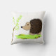 Un mignon petit hérisson fantaisiste sur un bout d'herbe, à côté d'une branche remplie de feuilles.