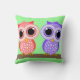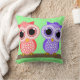 Coussins mignons de Mojo d'Américain de hiboux, T-shirts, sweatshirts, chemises et cadeaux roses et pourpres de hibou pour des amants de hibou, des amants d'oiseau et des birders. Deux hiboux se reposant sur le membre d'arbre. Cadeaux uniques, colorés et frais de hibou pour des anniversaires, Noël ou toute occasion.