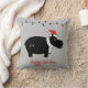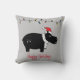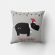 Un oreiller Whimsical saisonnier propose des hippo noirs illustration avec chapeau de Père Noël rouge, une chaîne de lumières de vacances et un texte personnalisable "Joyeuses Fêtes"