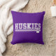 Cet oreiller à accent est montré avec une impression Huskies. Les couleurs sont violettes et blanches. Customisez cet objet ou achetez tel quel. Impression sous licence