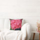 La photographie originale de MaeFlowers sur cet oreiller à jet de 16" est un closep d'hydrangées roses et leurs feuilles de printemps bordés de dentelles. Le pompon central des pétales de fleurs remplit presque la photo, entouré par les feuilles verts et des morceaux d'autres pompons de fleurs de chaque côté.